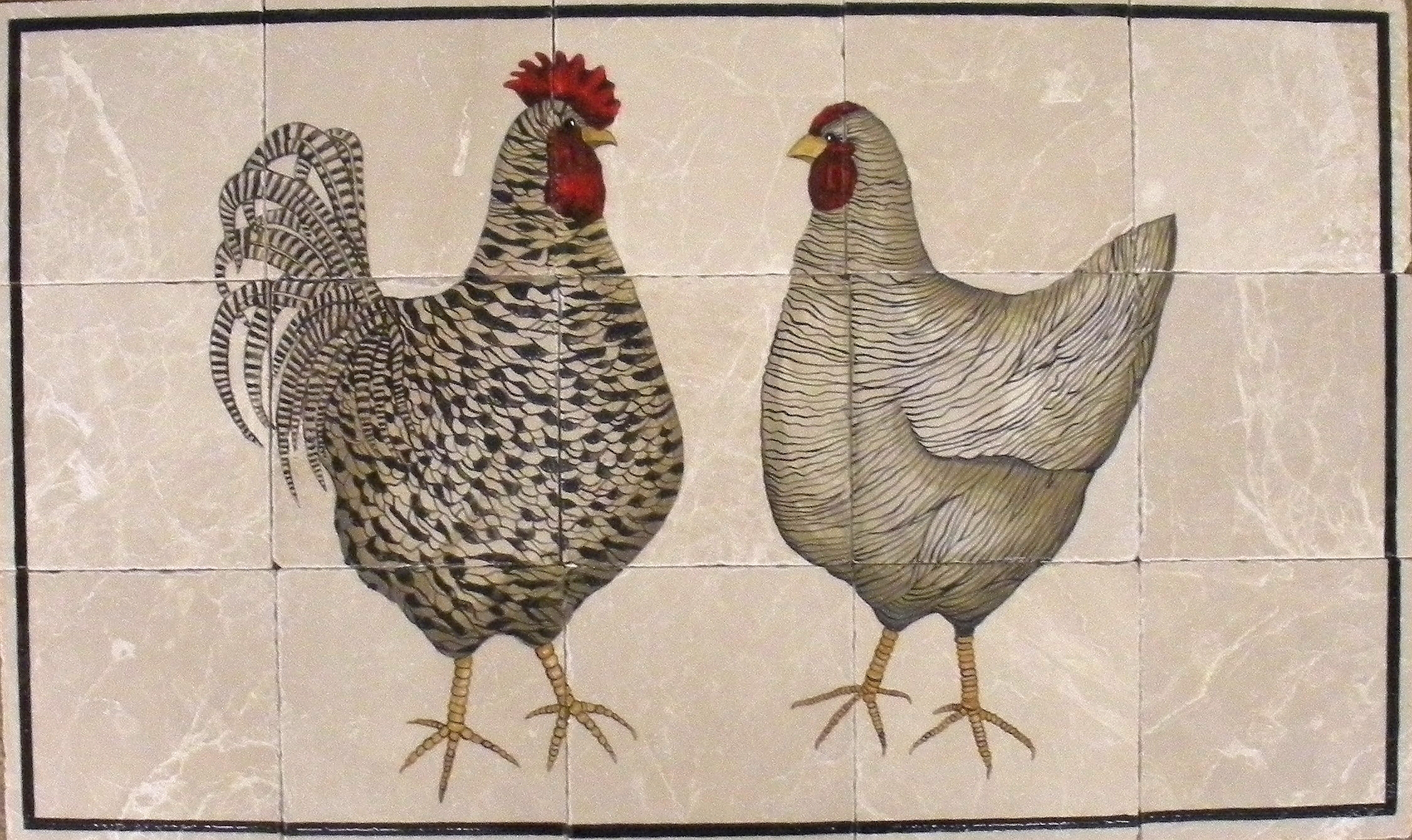 Contemporary Chickens Tile Mural, 18″ x 30″, $975.