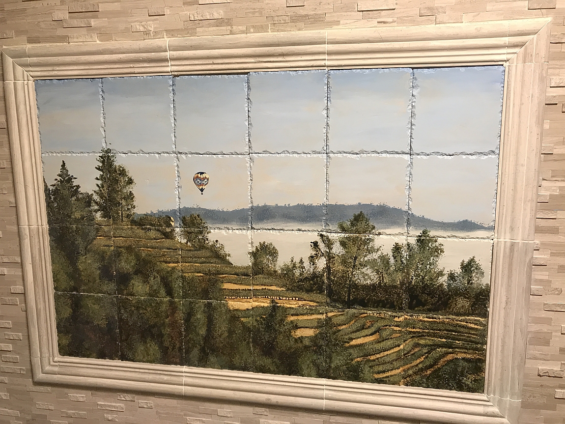 The Hillside Napa Vineyard tile mural makes a stunning and spirited addition to your kitchen or bath. Customize to any size or tile. Hand painted. 30″x36″ $1750 with Free Shipping.